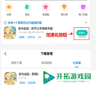 3、如果不点击【加速化】按钮,也能通过右上角【下载管理】找到对应游戏并加速。