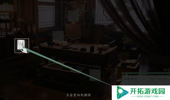 进入剧情,到图中的位置,点击物品进行查看信息。