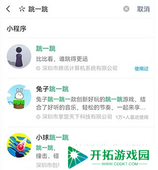 1、打开微信,搜索跳一跳小程序,直接打开。